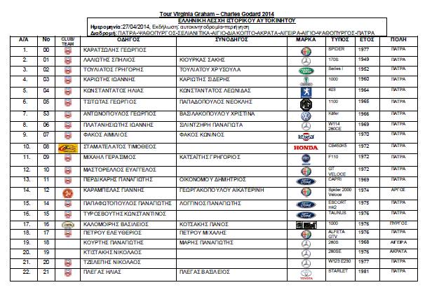 Tour de Virginia Graham-Charles Godard 2014 – ΣΥΜΜΕΤΟΧΕΣ