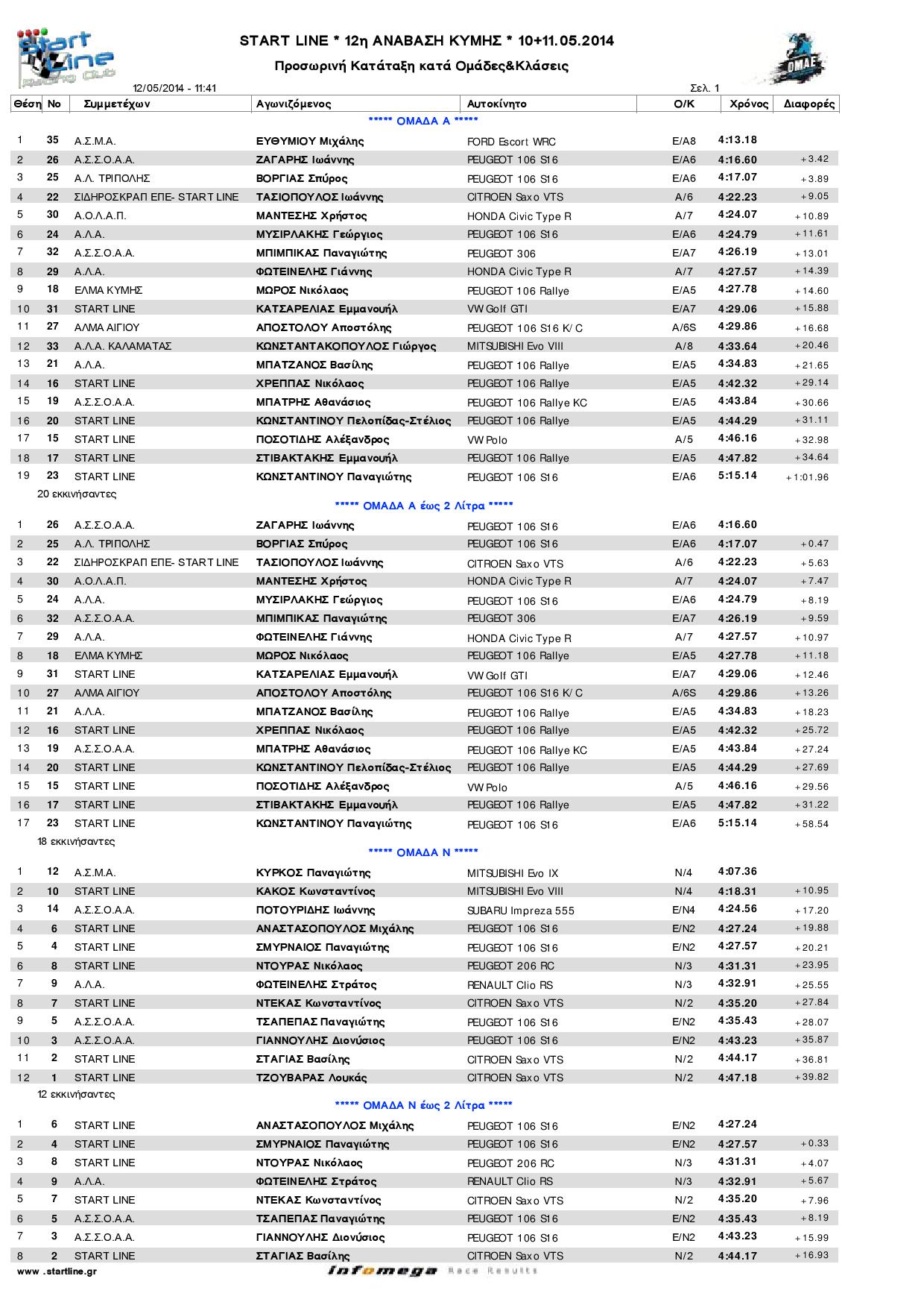 Νικητής της Κλάσης Ν/2 –ΕΝ/2 ήταν ο Μιχάλης Αναστασόπουλος με δεύτερο τον Παναγιώτη Σμυρναίο και τρίτο τον Κώστα Ντέκα (Νο 7) με CITROEN Saxo VTS και χρόνο 4:35.20.