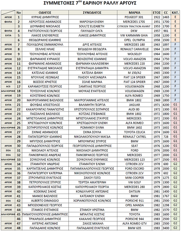 Regularity: 7ο ΕΑΡΙΝΟ REGULARITY ΡΑΛΛΥ ΑΡΓΟΥΣ – 1η Ιουνίου 2014|Συμμετοχές