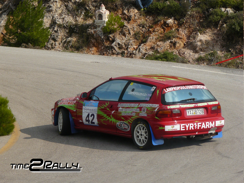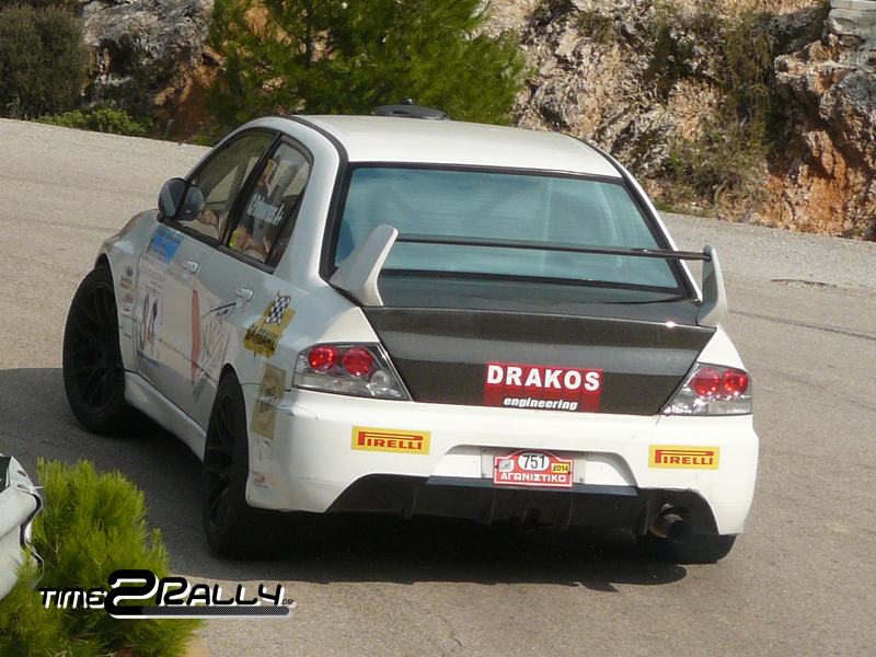 με το θηριώδες AUDI Quattro S1 σημείωσε τον καλύτερο χρόνο για το πρώτο σκέλος 2:05.14, στην Κατηγορία Formula Saloon Turbo . Πίσω του βρέθηκε ο Πατσουρέας Κώστας με +5.22δευτ και τρίτος ο Ζυγογιάννης Κωνσταντίνος με το AUDI A3. Στην Κατηγορία Ν ο Κάκος Κωνσταντίνος MITSUBISHI EVO VIII N/4 έκανε χρόνο 2:25.46  μπροστά από τον Ζακχαίο Νικόλαο με CITROEN Saxo VTS N/2  και τον τρίτο Ντούρα Νικόλαο με PEUGEOT 206 RC N/3.