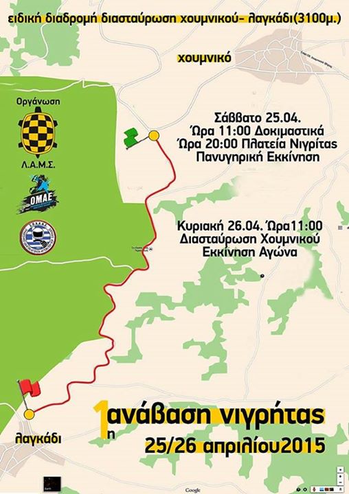 Τις 31 συμμετοχές έφτασε η Ανάβαση Νιγρίτας. Το Αθλητικό Σωματείο Λ.Α.Μ.Σ., μετά από την έγκριση της ΟΜΑΕ-ΕΠΑ , οργανώνει την 1η Ανάβαση Βορείου Ελλάδας 2015 που θα διεξαχθεί στις 25 &26 Απριλίου 2015 στην Νιγρίτα Σερρών. Ο Αγώνας περιλαμβάνεται στο Κύπελλο Αναβάσεων – Ταχύτητας Β.Ελλάδος 2015. Η ανάβαση θα γίνει σε διαδρομή 3,1 χιλιομέτρων.