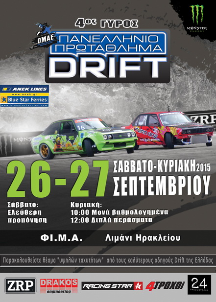 Το Σωματείο “Φίλοι Μηχανοκίνητων Αθλοπαιδιών” (ΦΙΜΑ) διοργανώνει κατά το διήμερο 26-27 Σεπτεμβρίου 2015 τον 4ο γύρο του Πρωταθλήματος Drift 2015, που θα διεξαχθεί στο Λιμάνι του Ηρακλείου Κρήτης και συγκέντρωσε 35 συμμετοχές.