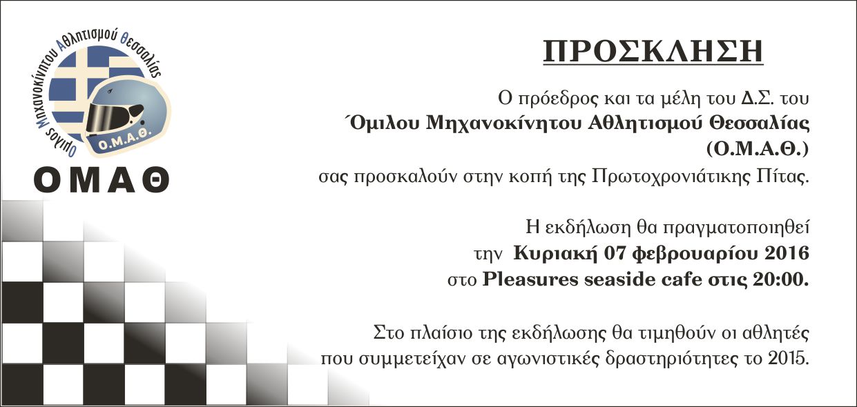 2.ΠρόσκλησηΌ Όμιλος Μηχανοκίνητου Αθλητισμού Θεσσαλίας προσκαλεί τους αθλητές, τα μέλη και