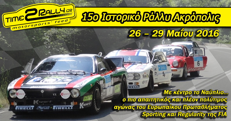 Η Ομοσπονδία Μηχανοκίνητου Αθλητισμού Ελλάδος ανακοίνωσε την διοργάνωση του Ιστορικού Ράλλυ Ακρόπολις 2016, το οποίο θα διεξαχθεί από 26 – 29 Μαΐου 2016, με κέντρο την πρώτη πρωτεύουσα της Ελλάδας, την πανέμορφη πόλη του Ναυπλίου. Ως γνωστόν, πρόκειται για τον διασημότερο, τον πιο απαιτητικό και τον πλέον πολύτιμο για τους συμμετέχοντες αγώνα των Ευρωπαϊκών Πρωταθλημάτων Sporting και Regularity της FIA.