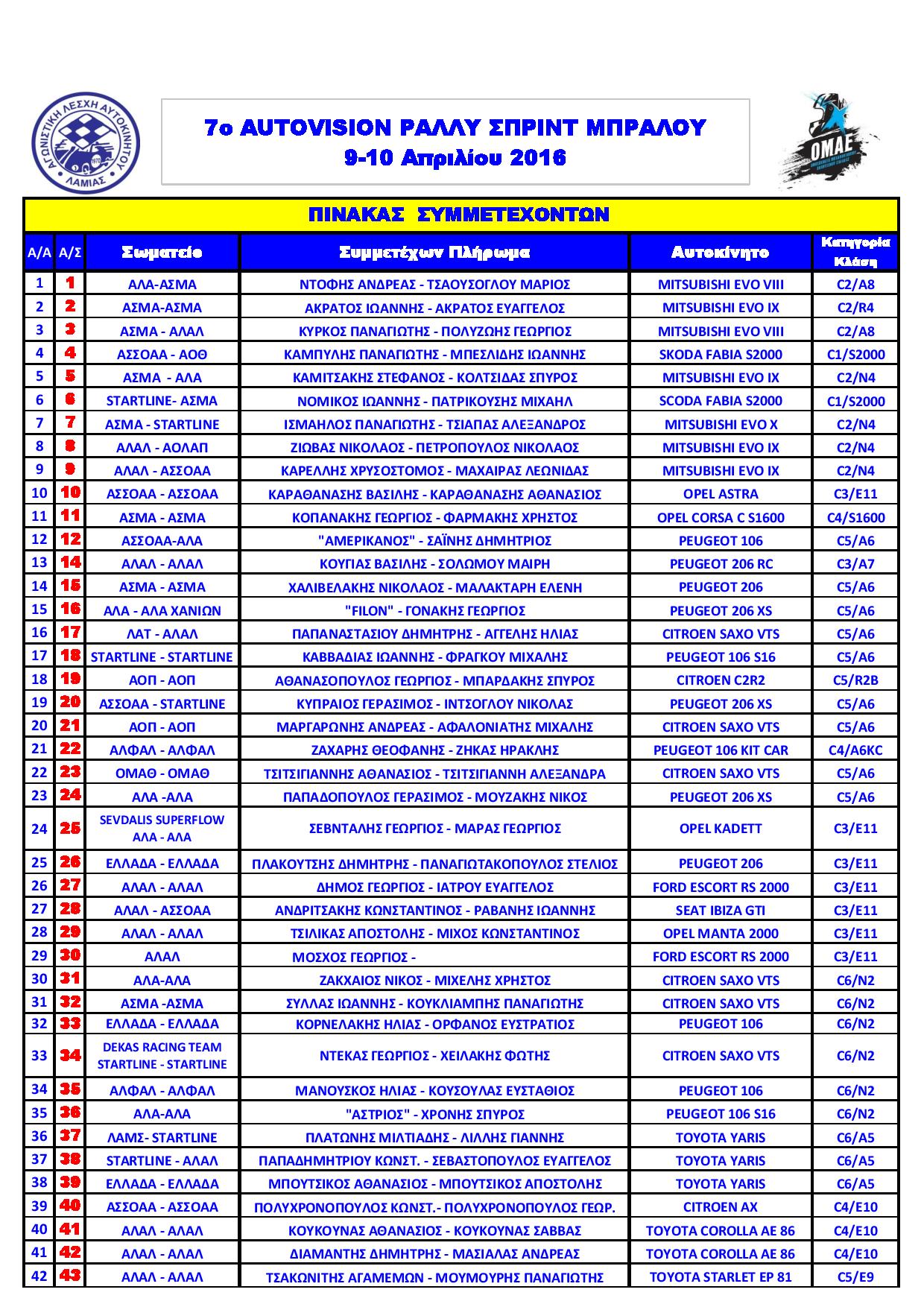 Το Αθλητικό Σωματείο “Αγωνιστική Λέσχη Αυτοκινήτου Λαμίας“, έχοντας πάντοτε ως στόχο την ασφαλή και άρτια διοργάνωση, αναμένεται να συγκεντρώσει το ενδιαφέρον θεατών και την ευχαρίστηση των πληρωμάτων.