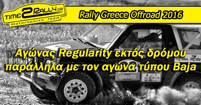 Τη φετινή χρονιά, η οργανωτική επιτροπή του 4ου Rally Greece Offroad, ανανεώνει την προσπάθεια της για τη πραγματοποίηση μιας εκδήλωσης regularity για αυτοκίνητα εκτός δρόμου, παράλληλα με τον “κανονικό” αγώνα τύπου Baja.