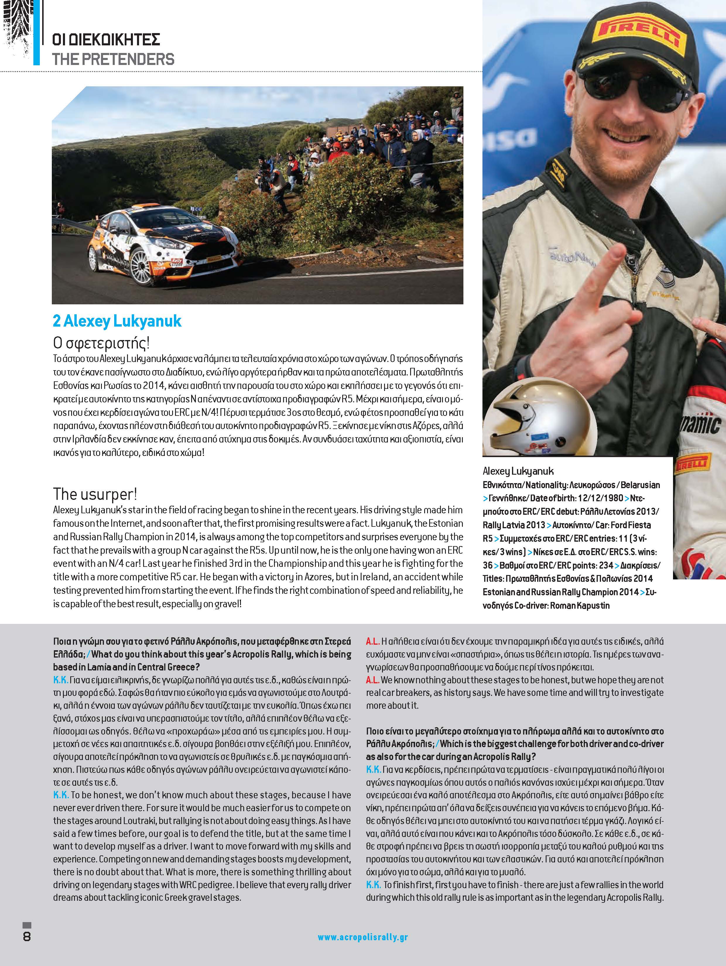 «Θα είναι καλύτερο να μη βρέξει. Οι ειδικές διαδρομές είναι δύσκολες και σκληρές, όμως αυτή είναι η φύση του Ράλλυ Ακρόπολις και κάτι τέτοιο ήταν αναμενόμενο».