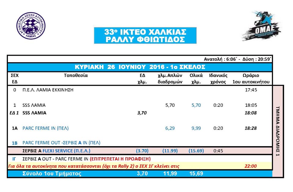 Αρχικός Τεχνικός έλεγχος και έλεγχος/σφράγιση των turbo: Σάββατο 25 Ιουνίου, ώρα 12:00-15:00 (Ι ΚΤΕΟ Χαλκιάς, Λαμία)