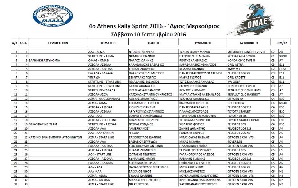 4ο Athens Rally Sprint | Συμμετοχές