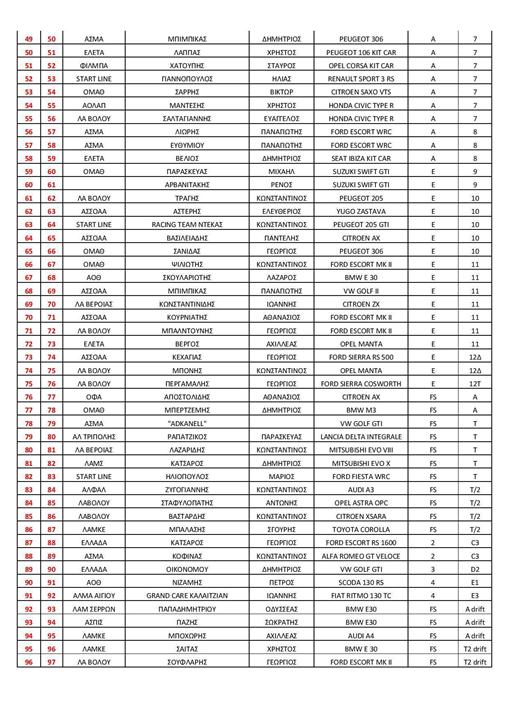 Υποστηρικτές: Food Service Καρακατσάνης, Ελαστικά Αντωνοβαρδάκης, , Γερανομεταφορές Κεφαλάς, EΨΑ, Ανταλλακτικά αυτ/των Tόρη – Χατζή , Εξοπλισμός Αγωνιστικών αυτ/των Αγγλόπουλος Racing, δυναμομετρήσεις – βελτιώσεις Χονδρονίνος, Ανταλλακτικά αυτ/των Πέππας ,Hotel Prasino-Galazio & Mπλέ Φεγγάρι Dreamy Suites, Café Giusto.