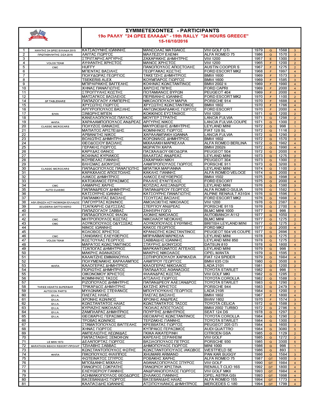 Με 80 συμμετοχές το 19ο “24 ΩΡΕΣ ΕΛΛΑΔΑ” Regularity Rally
