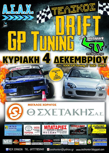 Όλα είναι έτοιμα για τον τελικό αγώνα του Κυπέλλου Drift για το 2016 και αντίστοιχα το τελικό στα GP Tuning τη Κυριακή 4/12/2016 στη Pista Park.