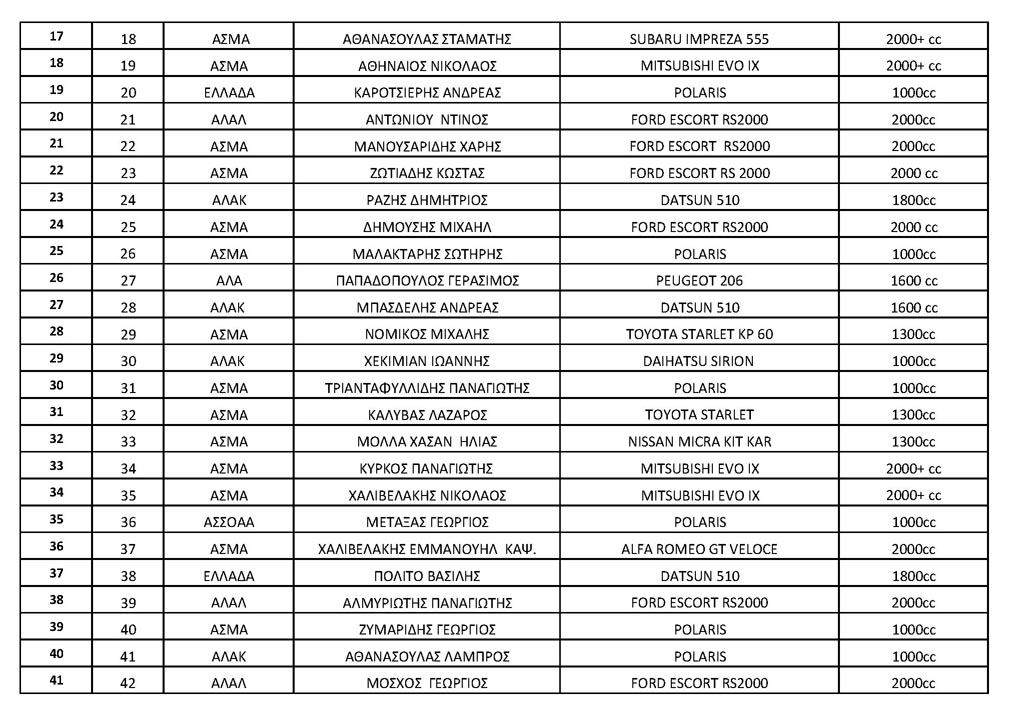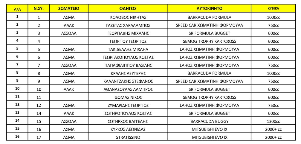 Εντυπωσιακό ήχο και γρήγορα περάσματα θα προσφέρουν οι 14 χωμάτινες φόρμουλες που δήλωσαν συμμετοχή. Εκεί, περιλαμβάνονται ονόματα, όπως ο Λάμπρος Αθανασούλας, γνωστός από τη συμμετοχή του σε αρκετά Ράλλυ Ακρόπολις, ο Χαράλαμπος Γαζετάς, ο Γιώργος Ζυμαρίδης, ο Βασίλης Παπαφιλίππου κ.α. Ευχάριστη έκπληξη αποτελούν οι δύο Κύπριοι που δήλωσαν συμμετοχή, ο Νίκος Θωμά και ο Γιώργος Γεωργίου. Ο Θωμά είναι ο νεότερος οδηγός που έχει κερδίσει το Ράλλυ Κύπρου, καθώς είχε επικρατήσει το 2007 στον αγώνα, ενώ παράλληλα τον θυμόμαστε και από τη συμμετοχή του σε ελληνικούς αγώνες στο παρελθόν.