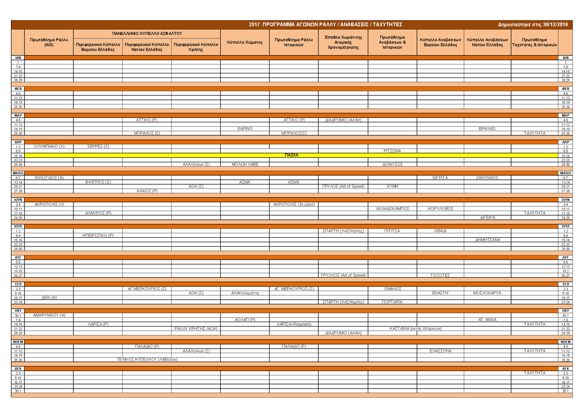 Η ΕΠ.Α. ανακοίνωσε τα Προγράμματα Αγώνων Αυτοκινήτου 2017 (Ημερολόγιο Αγώνων Ράλλυ-Αναβάσεων-Ταχύτητας 2017 και Ημερολόγιο Αγώνων Dragster-Drift-Ατομικής Χρονομέτρησης-Δεξιοτεχνίας 2017 καθώς και την Προκήρυξη των Πρωταθλημάτων, Κυπέλλων και Επάθλων Αυτοκινήτου 2017.