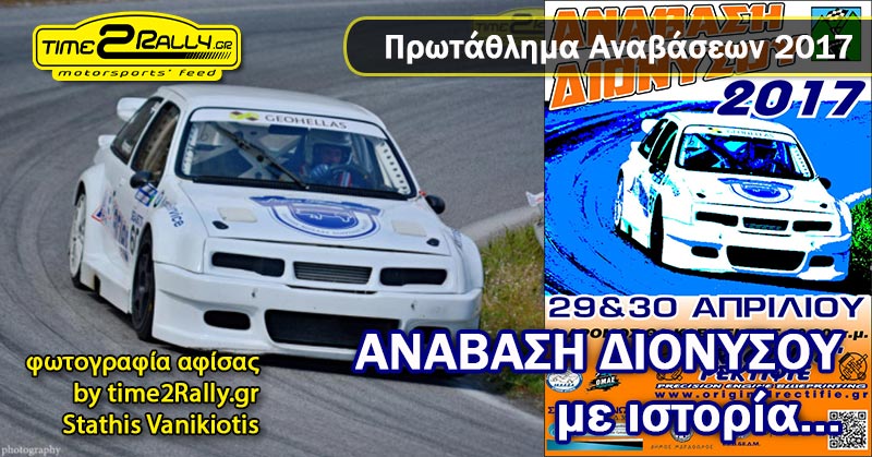 Ο χρόνος μετρά αντίστροφα ενόψει της διεξαγωγής της Ανάβασης Διονύσου 2017, που θα διοργανωθεί στις 29-30 Απριλίου από την Ελληνική Λέσχη Αυτοκινήτου Δυτικής Αττικής (ΕΛ.Λ.Α.Δ.Α.) και αποτελεί τον 2ο γύρο του Πανελλήνιου Πρωταθλήματος Αναβάσεων και Ιστορικών Αυτοκινήτων.