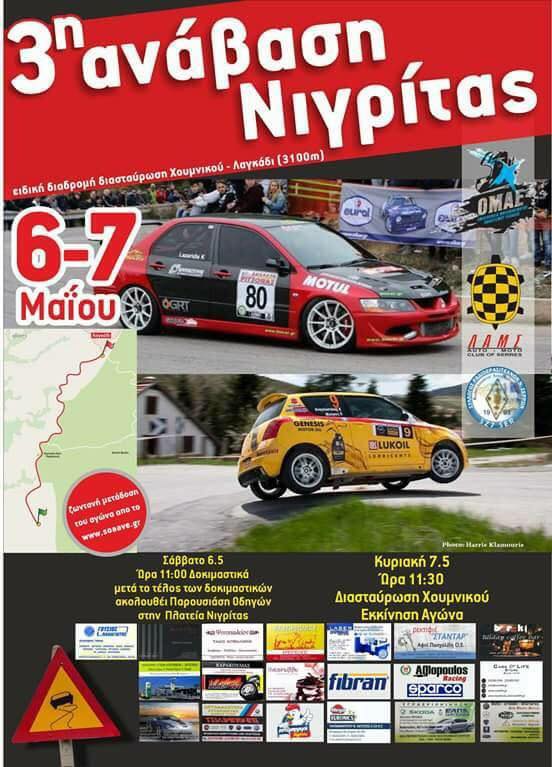Η Λέσχη Αυτοκινήτου και Μοτοσικλέτας Σερρών διοργανώνει το Σαββατοκύριακο 6 και 7 Μαϊου την τρίτη Ανάβαση Νιγρίτας.