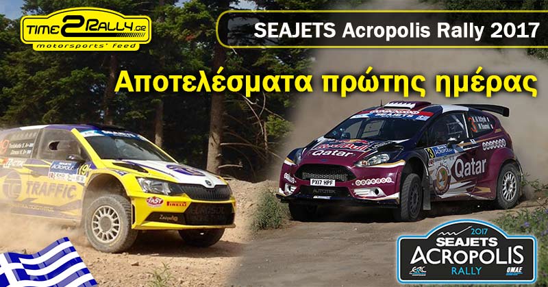 Το σκληρό πρόσωπο του SEAJETS Ράλλυ Ακρόπολις γνώρισε ο Kajetan Kajetanowicz, ο οποίος είχε δύο κλαταρισμένα ελαστικά κατά τη διάρκεια της πρώτης ημέρας. Ο Πολωνός δύο φορές Πρωταθλητής Ευρώπης ήταν ταχύς, αφού κέρδισε ειδικές, αλλά τα κλαταρίσματα του κόστισαν σε χρόνο, περιορίζοντάς τον μέχρι στιγμής στην 3η θέση. Την ελληνική σημαία κρατά ψηλά ο Σωκράτης Τσολακίδης, με τον Χάρη Δήμο στο δεξί μπάκετ του Skoda Fabia R5. Ο Πρωταθλητής Ελλάδος του 2003 ξεκίνησε εντυπωσιακά, σημειώνοντας χρόνους κοντά στους ξένους κορυφαίους συνδυασμούς, και παραμένει στην 4η θέση της κατάταξης, αφήνοντας πολλές υποσχέσεις με τις επιδόσεις του για την αυριανή ημέρα.