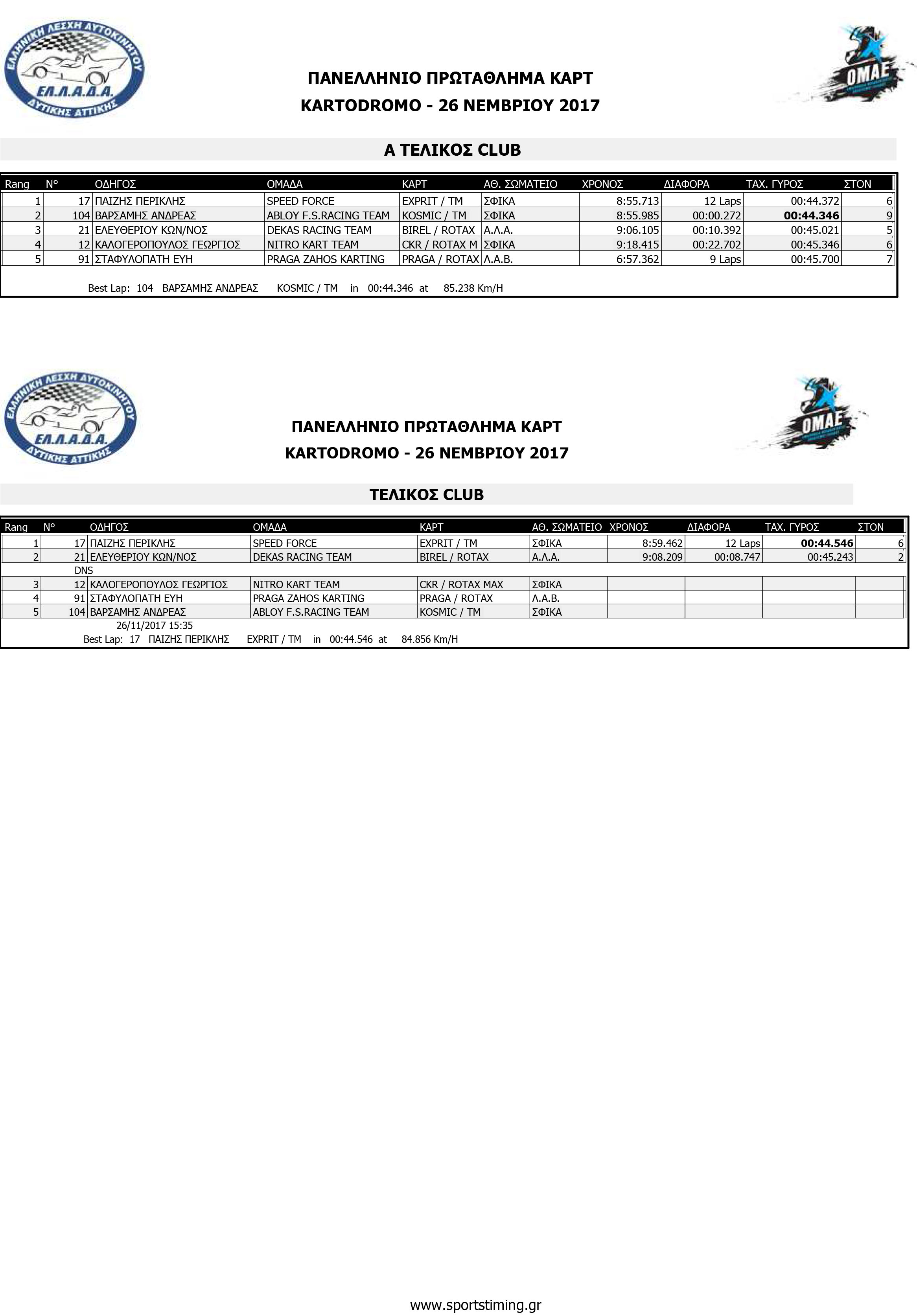 Το Πανελλήνιο Πρωτάθλημα Karting, μετά από δύο χρόνια σημαντικής προόδου, πολύπλευρης βελτίωσης και αύξησης των αγωνιστικών δελτίων, γνώρισε σήμερα στο Kartodromo το λαμπρό φινάλε που του άξιζε, και ανανέωσε με όλους το ραντεβού του για το 2018.