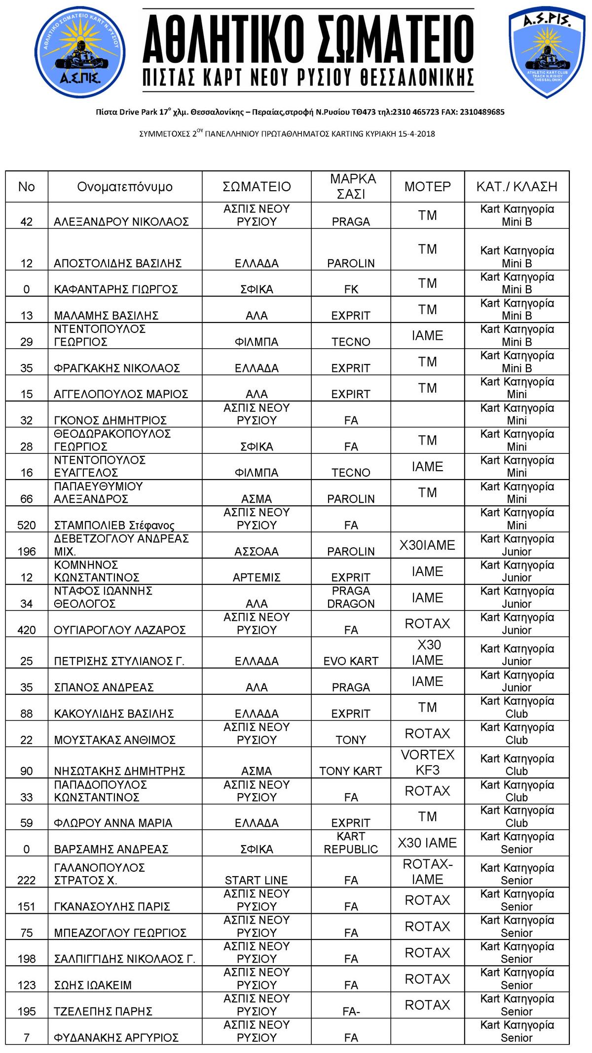 Την Κυριακή 15 Απριλίου 2018, θα διεξαχθεί στην πόλη της Θεσσαλονίκης ο 2ος αγώνας του Πανελληνίου Πρωταθλήματος Κarting για το 2018.