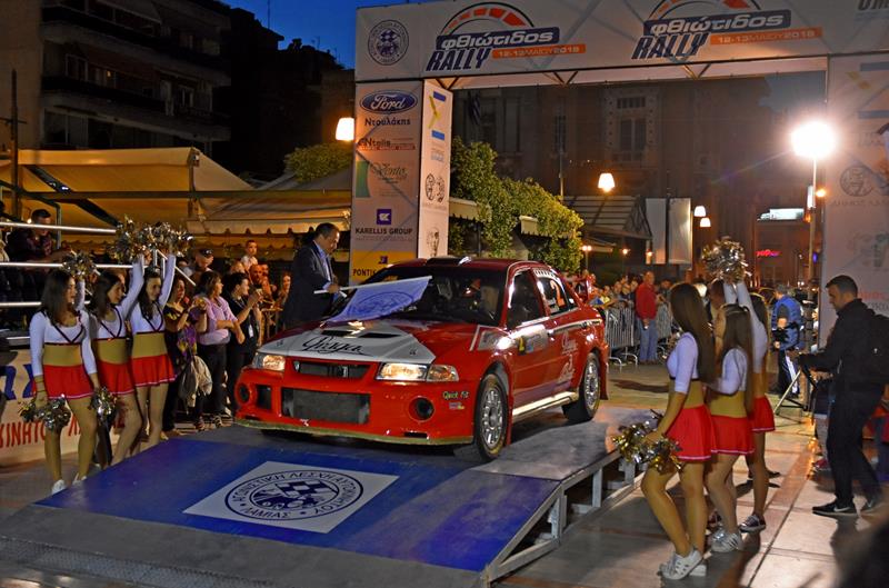 Λίγες ώρες αργότερα τους αγωνιζόμενους υποδέχθηκε στην πλατεία Ελευθερίας ο Δήμαρχος Λαμιέων, Νίκος Σταυρογιάννης, που έδωσε την εκκίνηση στον Ιορδάνη Σερδερίδη -χωρίς το αυτοκίνητό του, το οποίο μετατρεπόταν την ίδια ώρα σε «χωμάτινο»- και στους πρωτοπόρους της βαθμολογίας, νικητές του Ολυμπιακού Ράλλυ, Γιάννη Μπαντούνα και Κωνσταντίνο Σούκουλη (Mitsubishi EvoV/VI).