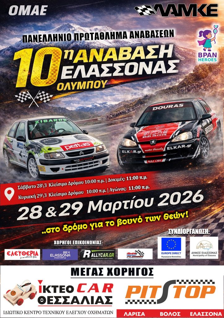 Η καρδιά του μηχανοκίνητου αθλητισμού χτυπά ξανά στην Ελασσόνα! Το προσεχές Σαββατοκύριακο, 28 και 29 Μαρτίου, η πόλη ετοιμάζεται να υποδεχθεί τη δέκατη, επετειακή διοργάνωση της εμβληματικής Ανάβασης Ελασσόνας, ενός αθλητικού θεσμού που αναμένεται να συγκεντρώσει το ενδιαφέρον χιλιάδων φίλων της ταχύτητας από όλη τη χώρα.