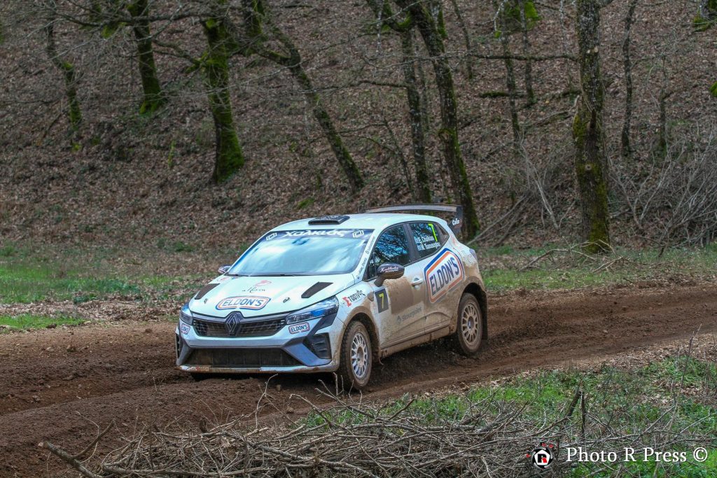 Πέμπτοι γενικής και δεύτεροι στην κατηγορία Rally3 ολοκλήρωσαν το Ολυμπιακό Ράλλυ οι Θέμης Χαλκιάς-Μάριος Τσαούσογλου, πετυχαίνοντας μάλιστα την ταχύτερη επίδοση στη δεύτερη διέλευση από τη Φολόη με το λευκό Renault Clio Rally3. Αν και το ξεκίνημά τους ήταν συγκρατημένο, στη συνέχεια ανέβασαν ρυθμό και πίεσαν, καταφέρνοντας στο φινάλε να ξεπεράσουν τους Πανίκο Πολυκάρπου-Γιώργο Βότση, οι οποίοι τερμάτισαν έκτοι γενικής και τρίτοι στην κατηγορία Rally3. Ο Κύπριος οδηγός, έχοντας για δεύτερη φορά στα χέρια του το ασημί Renault Clio Rally3, επέλεξε να ακολουθήσει πιο συντηρητικό ρυθμό στις ιδιαίτερα απαιτητικές και γλιστερές συνθήκες, αποφεύγοντας το ρίσκο και στοχεύοντας στον τερματισμό.