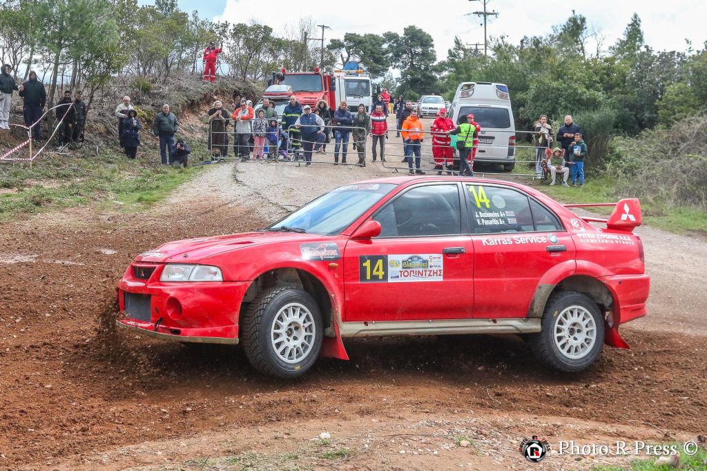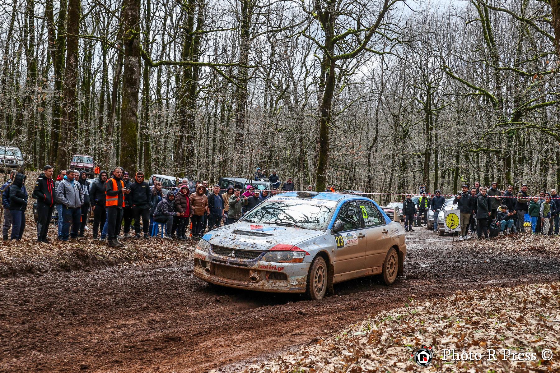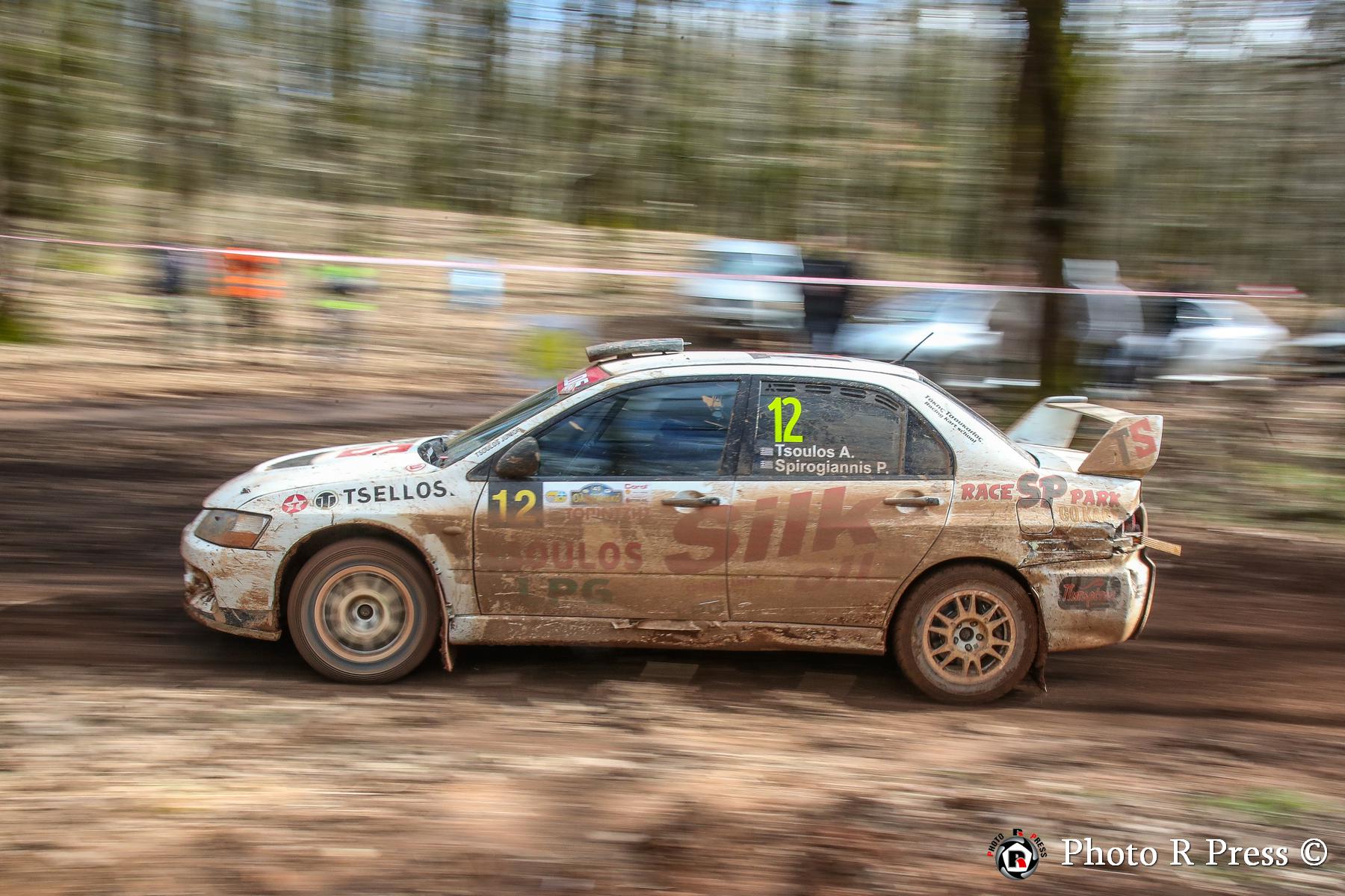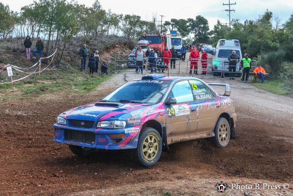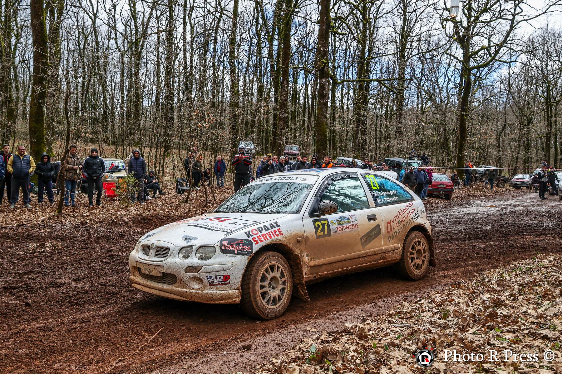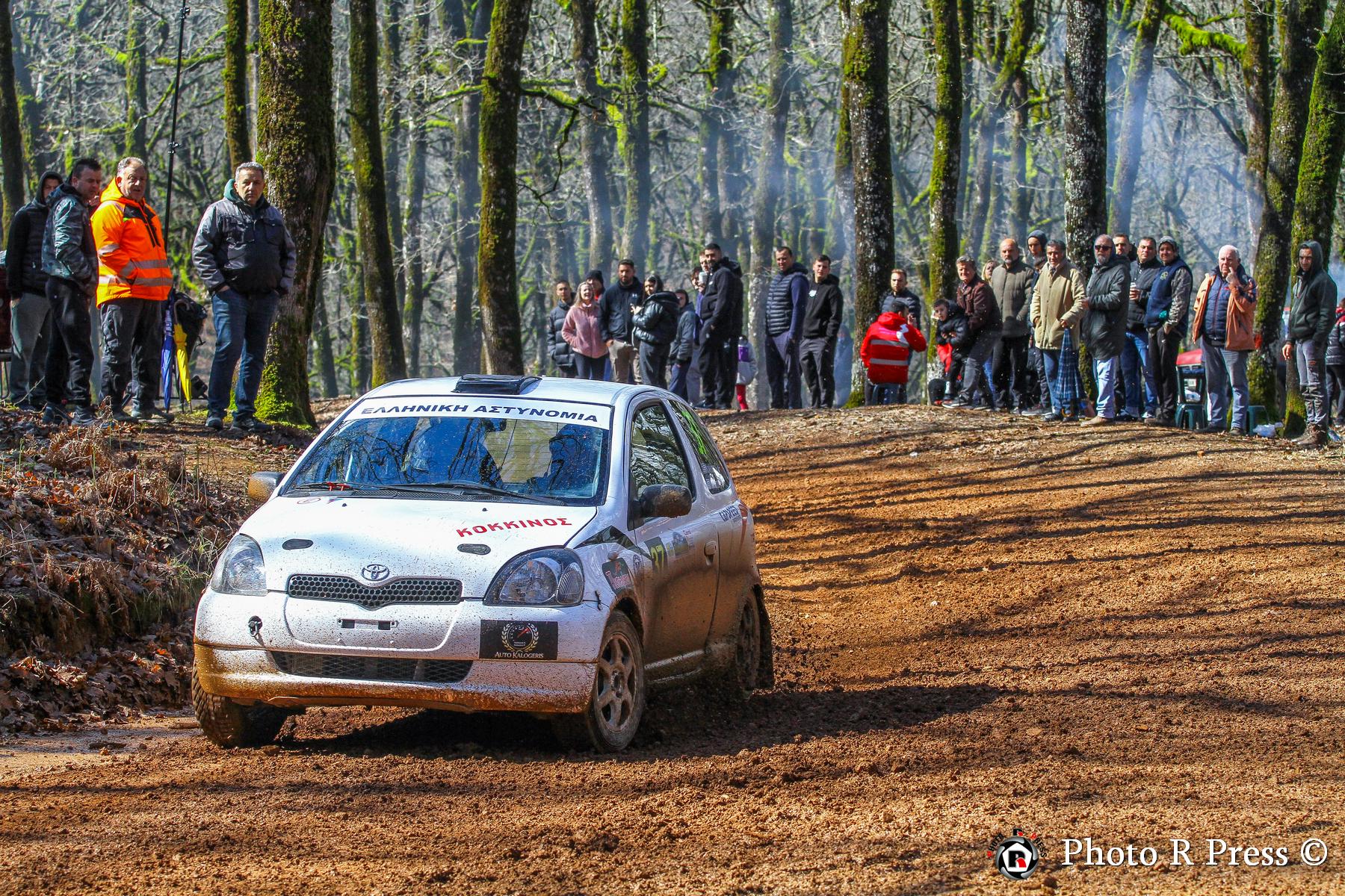 Με σύμμαχο την εμπειρία τους, οι Ιωάννης Παπαδημητρίου-Χρήστος Κουζιώνης έκαναν δυναμικό ξεκίνημα στον αγώνα, περνώντας από νωρίς στην κορυφή και χτίζοντας διαφορά άνω των 30 δευτερολέπτων από τους διώκτες τους στα μισά του σκέλους. Ωστόσο, η συνέχεια για τους Πρωταθλητές του 2025 δεν ήταν ανάλογη. Οι εξαιρετικά γλιστερές συνθήκες στην Ειδική Διαδρομή «Φολόη 2» έπαιξαν καθοριστικό ρόλο στην εξέλιξη της προσπάθειάς τους. Mια επαφή με δέντρο έθεσε πρόωρο τέλος στον αγώνα τους, με το Skoda Fabia RS Rally2 να υφίσταται ζημιά στην πίσω ανάρτηση.