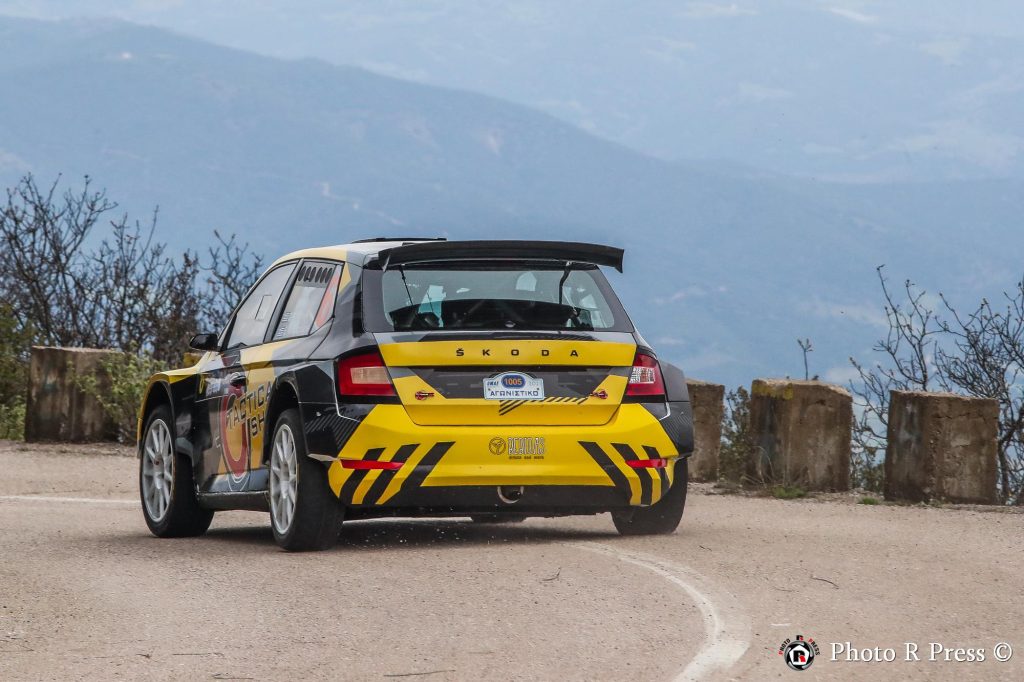 Η μάχη με τους Γιώργο Αργυρίου-Δημήτρη Πάσχο έληξε άδοξα, καθώς το πλήρωμα του Lancia Ypsilon HF Rally4, αντιμετώπισε κλατάρισμα στην ειδική διαδρομή «Υπάτη II», το οποίο σταμάτησε να αλλάξει, χάνοντας αρκετά λεπτά και κάθε ελπίδα για διάκριση, πριν τελικά εγκαταλείψουν τον αγώνα. Στην πρώτη τους επαφή με το Renault Clio Rally5, οι Ιωάννης Κωνσταντινίδης-Δημήτρης Κυπαρισσάς τερμάτισαν στην τρίτη θέση της F2, βελτιώνοντας τις επιδόσεις τους ειδική με ειδική.